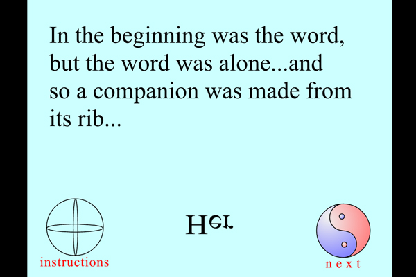 "'Stravinsky's Muse' is a flash-based hypertext that offers a lexical sphere as a set of dials for accessing the narrative via the semantic constructs in the mind of its protagonist, Stravinsky Jones. Each segment of narrative is complemented by a definition of one of the chosen terms in the form it takes in Jones' lexicon."--From ELMCIP.net