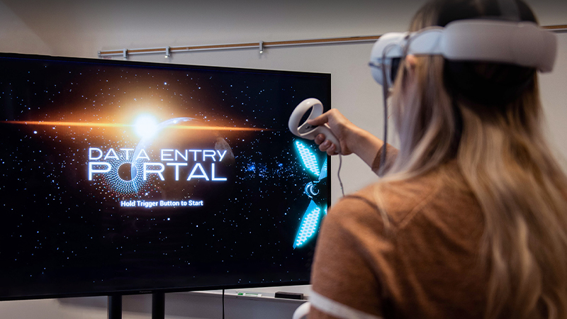 DATA ENTRY: PORTAL is an adaptation of the game Portal published in 1986 by Activision and the novel Portal: A Dataspace Retrieval published in 1988 by St. Martin's Press. Built as a Virtual Reality experience for the Quest 2, it takes the player through four puzzles and interactions with the AI named Homer that unlock the mystery of why humans have left Earth—and how to bring them back.