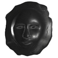 This brooch features the face of Lady Nii, one of the main characters in the 1991 narrative game King of Space, created by Sarah Smith; hand-made by Smith when the novel was reconstructed for the Web