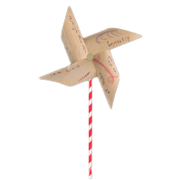This pinwheel, hand-made by artist Deena Larsen and envisioned as a poetry generator, was used by the artist to teach readers about hypertextual writing; lines of the poem are read on the spinning blades