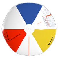 One of the two beach balls Richard Holeton tossed to audiences during performances of his hypertext novel Figurski at Findhorn on Acid to engage them with the work